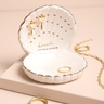 Elegant shell-shaped earring holder and dish Perfect for organizing earrings, rings, and small accessories Stylish addition to any vanity or dresser Ideal gift for lovers of coastal or beach-inspired décor