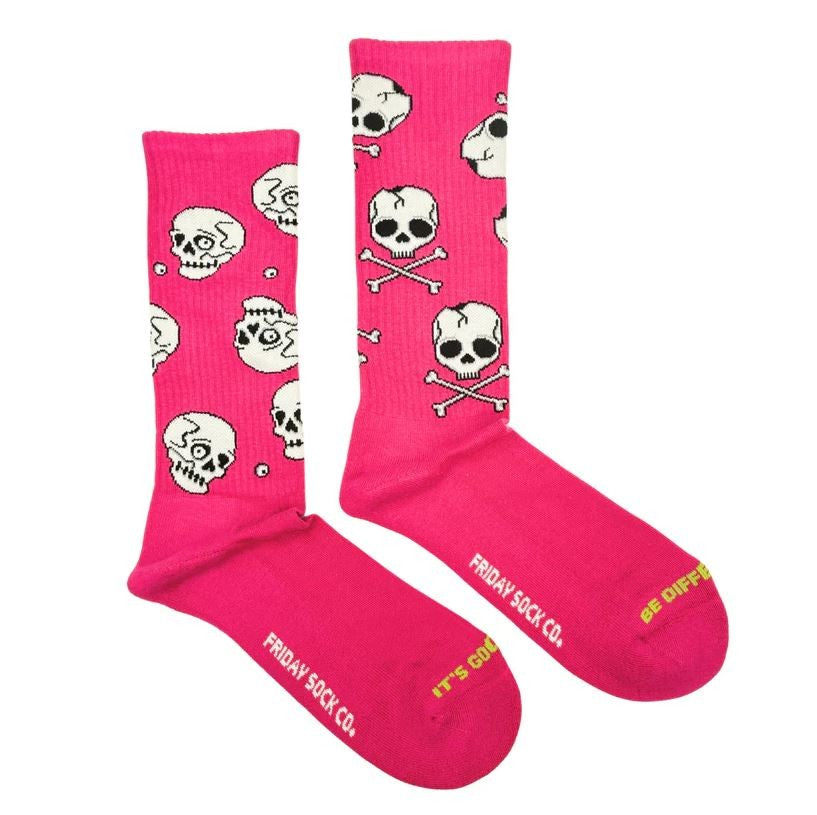Crush your workout with a killer look - these pink skull athletic socks bring bold energy and a little edge to every stride. Built for comfort and movement, featuring a cushioned terry cloth footbed and a supportive ribbed cuff.
