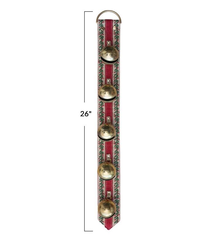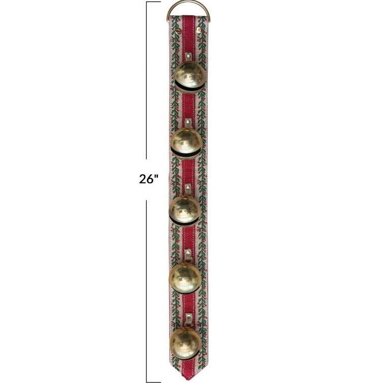 26"H Jute & Cotton Embroidered Sleigh Bells Door Hanger, Multi Color & Gold Finish