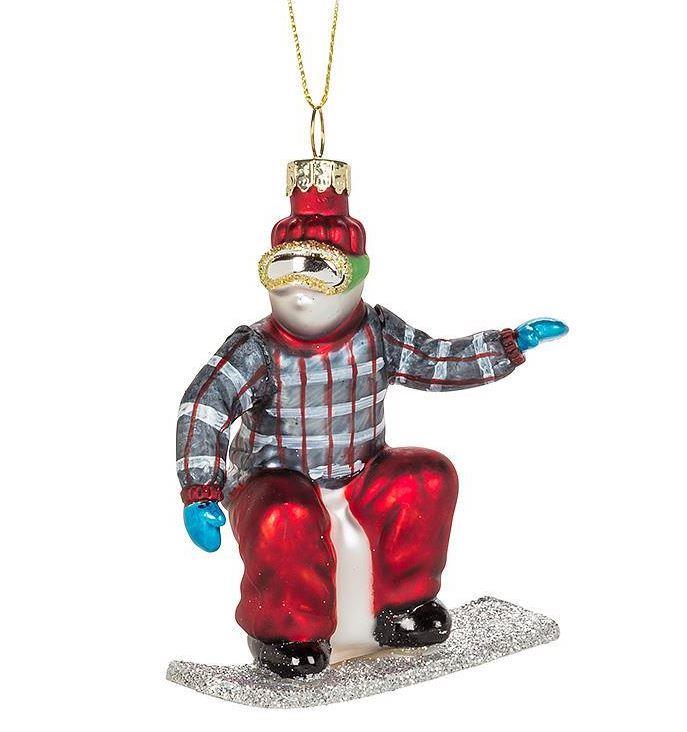 If you like shredding slopes, you'll love adding this dynamic Snowboarder Ornament to your Christmas tree! Crafted out of resin and glass, this ornament is sculpted to look just like a miniature snowboarder – complete with goggles, hat and cool snowboarding gear — for a crunchy-cool, sporty addition to your holiday decor.