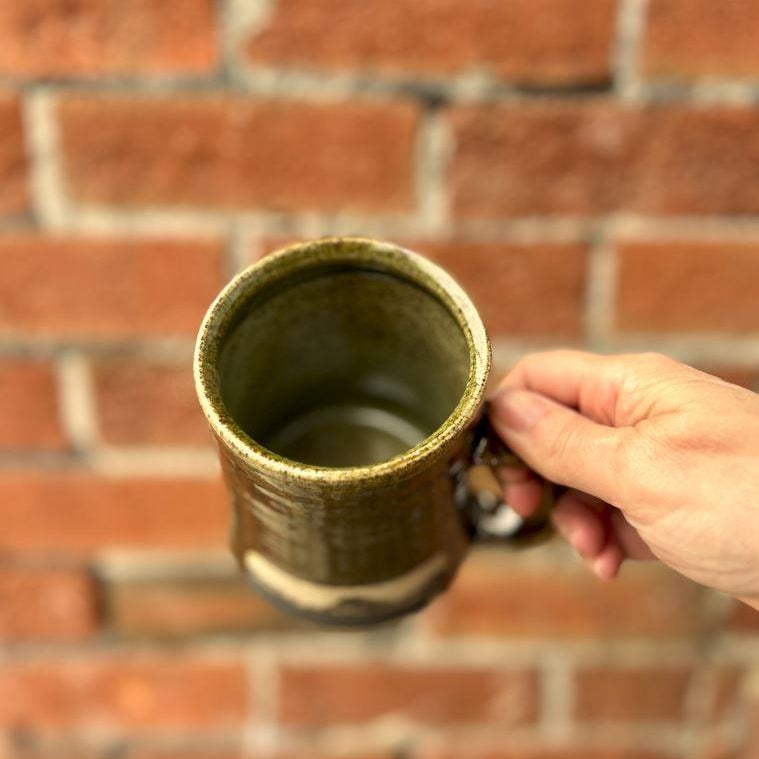 Gorgeous handmade pottery. This locally made mug features the Calgary Tower, perfectly capturing Calgary's iconic skyline scenic. Gorgeous handmade kitchenware made locally. Each has a distinct earthy toned glaze with hues or green, brown, and blues. No two are alike.