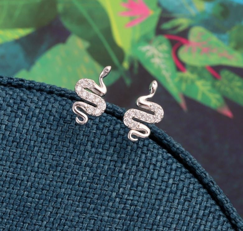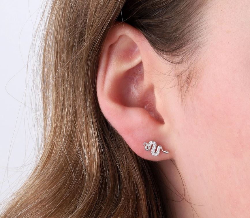 Edgy with a hint of sparkle, The Charmer earrings feature a sleek snake design crafted from sterling silver and highlighted with delicate sparkling accents. These striking studs blend mystique and elegance, perfect for everyday wear or adding a bold touch to your look.