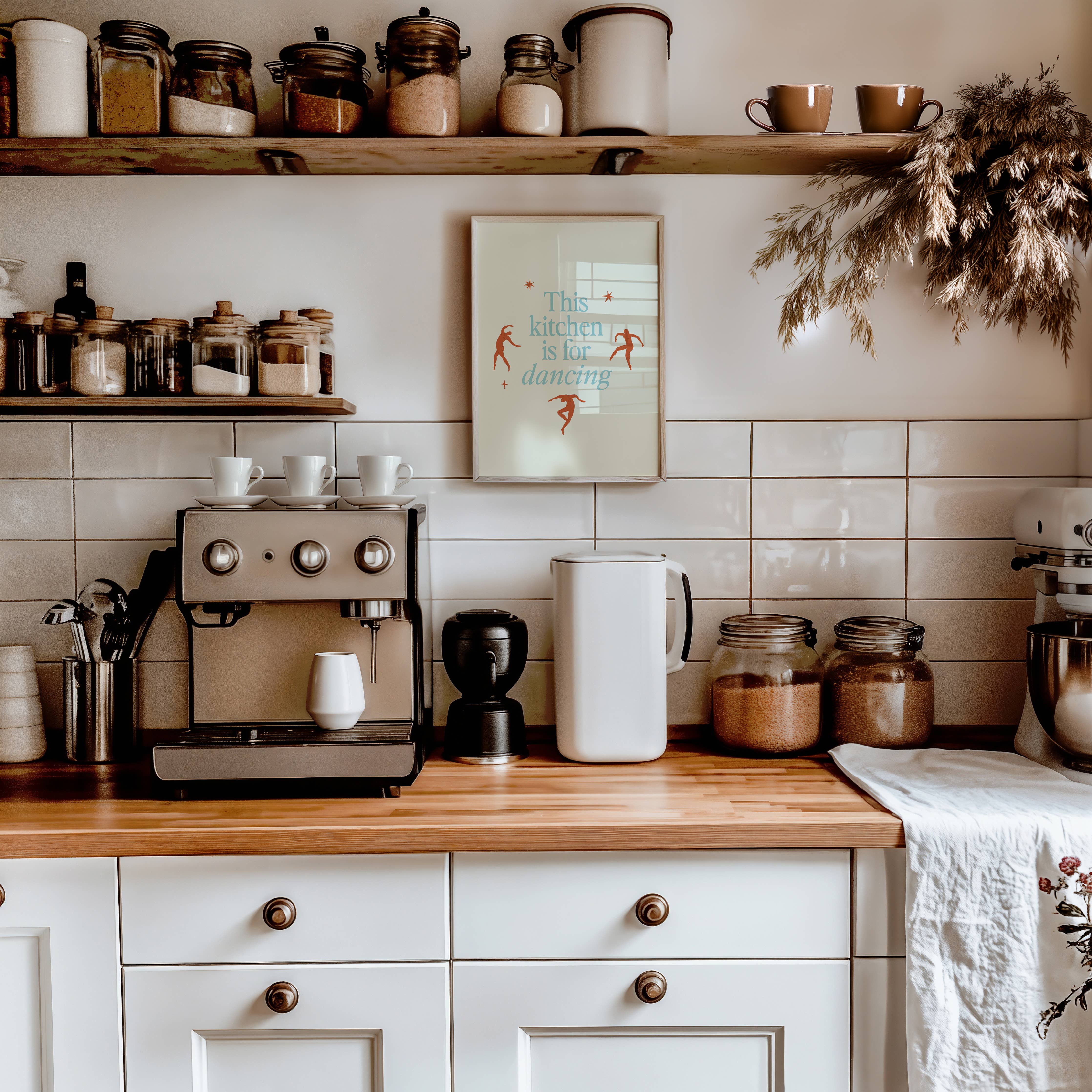This Kitchen Is For Dancing Quote Art Print Digitally hand-drawn and printed on 61lb premium heavyweight matte paper. All prints are packaged with a chipboard backing and in clear polypropylene slips for protection.